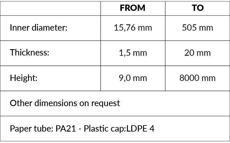 Tecnotubo Srl is able to produce tubes for various industries, such as cardboard tubes for construction, organizing production with varying characteristics and dimensions depending on the needs of the customer and the specific product. The ways in which cardboard tubes can be used in indistria are many and require ad hoc designs and specific experience, which our company has been able to accrue over the years.
